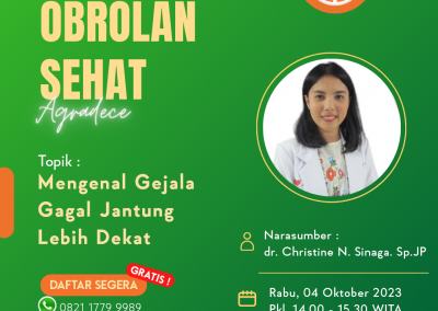 Kegiatan diskusi bersama melalui WA Grup pada hari Rabu, 04 Oktober 2023 dengan narasumber dr. Christine N. Sinaga, Sp.JP dengan topik "Mengenal Gejala Gagal Jantung Lebih Dekat" Rekapan Pertanyaan serta Jawaban dr. Christine pada Obrolan Sehat Agradece: 1. @Bp...